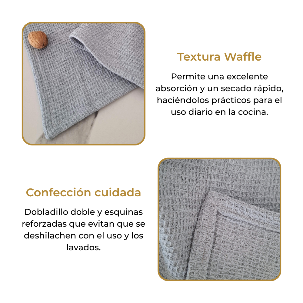 Dentro de esta colección, los Paños de cocina Chass combinan practicidad y estética, con colores que se integran naturalmente a tu cocina.